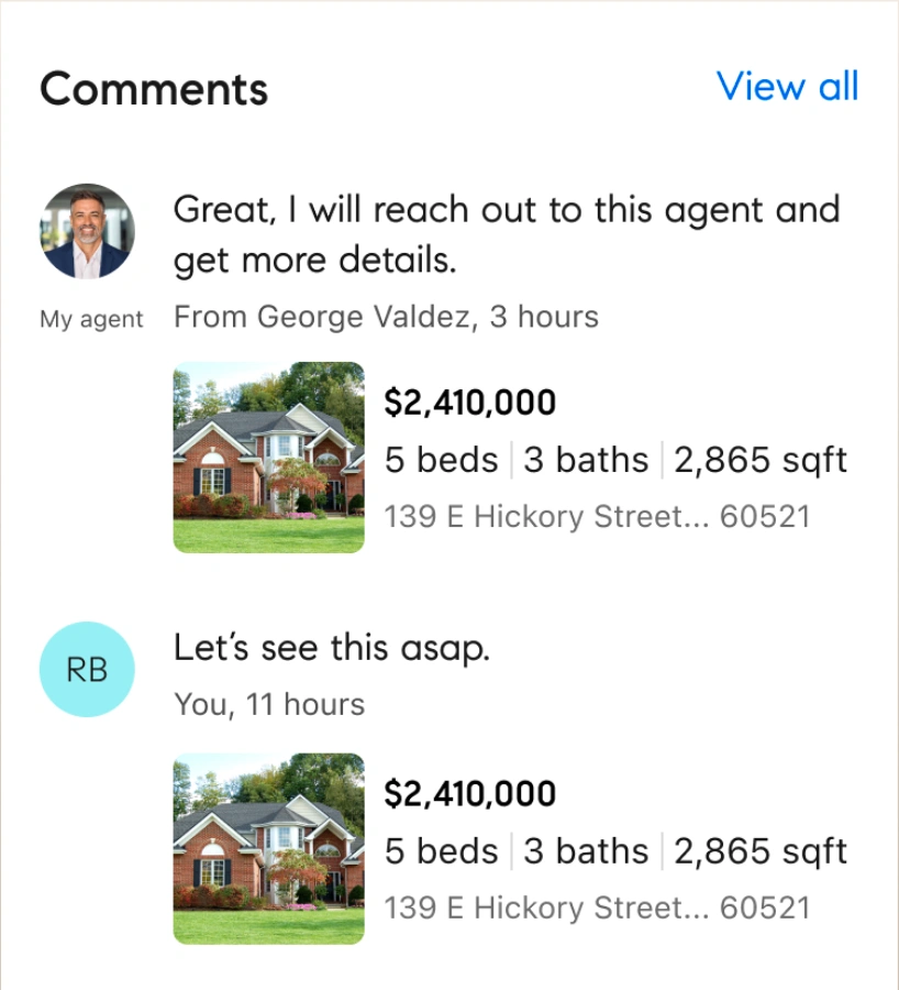 Organize, share, and comment on your favorite homes. Stay on top of new listings, request tours, and view your tour schedule with ease.