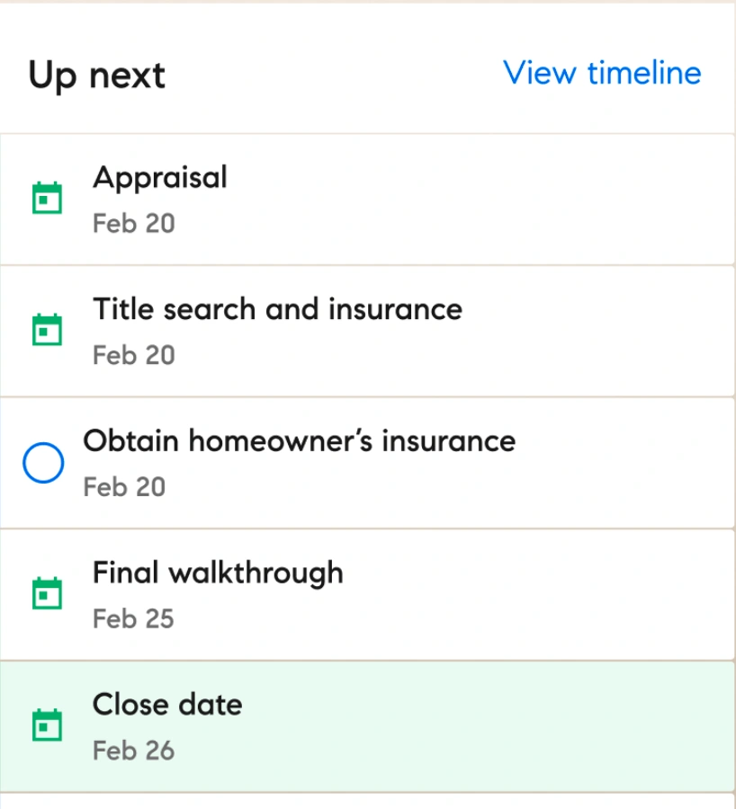View your timeline for a comprehensive overview of upcoming steps, recent updates, and pending tasks.